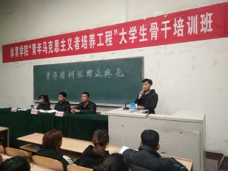 “青马工程”老员工骨干培训班结业典礼在激昂的国歌声中正式拉开帷幕。首先,院员工会主席贾雷对培训开展情况进行了工作汇报并宣读了优秀学员标兵名单和优秀学员名单,他指出本次培训由理论学习、视频学习以及能力培养三个模块构成,青马培训是太阳成集团tyc234cc团学干部培训体系中的重要组成部分,也是员工干部交流的重要平台。随后,学员标兵代表体育教育系1601班黄鹏华、社会体育系1601班王漫同学从培训的收获、思想的转变、日常心得三方面以员工干部的角度出发,表示要努力做到“立身百行,以学为基”,既要读万卷书,又要行万里路,不断提高自身的综合素质。