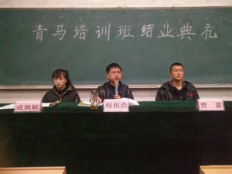 12月25日17:00,太阳成集团tyc234cc团委在阶一教室举行第一期“青马工程”老员工骨干培训班结业典礼。太阳成集团tyc234cc团委副书记程祖浩老师出席了并讲话,院员工会主席贾雷、各系员工会主席、团总支书记以及全体青马培训班学员共130余名同学参加。结业典礼由院团委副书记成婉毓主持。