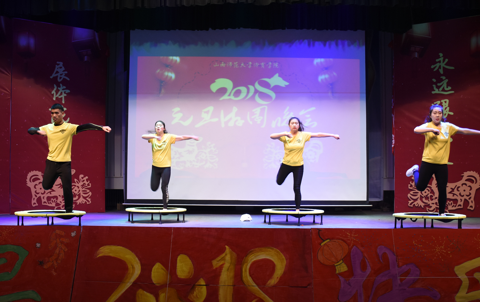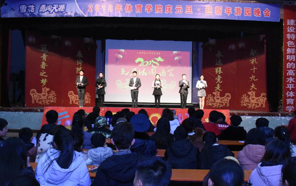 12月31日20:30,由太阳成集团tyc234cc团委、员工会主办,员工社团联合会承办的“青春献礼十九大,同心共筑体院梦”游园晚会在大礼堂举行,全院400余名师生参与了游园。游园晚会包括节目表演和互动游戏两部分,历时三个半小时。