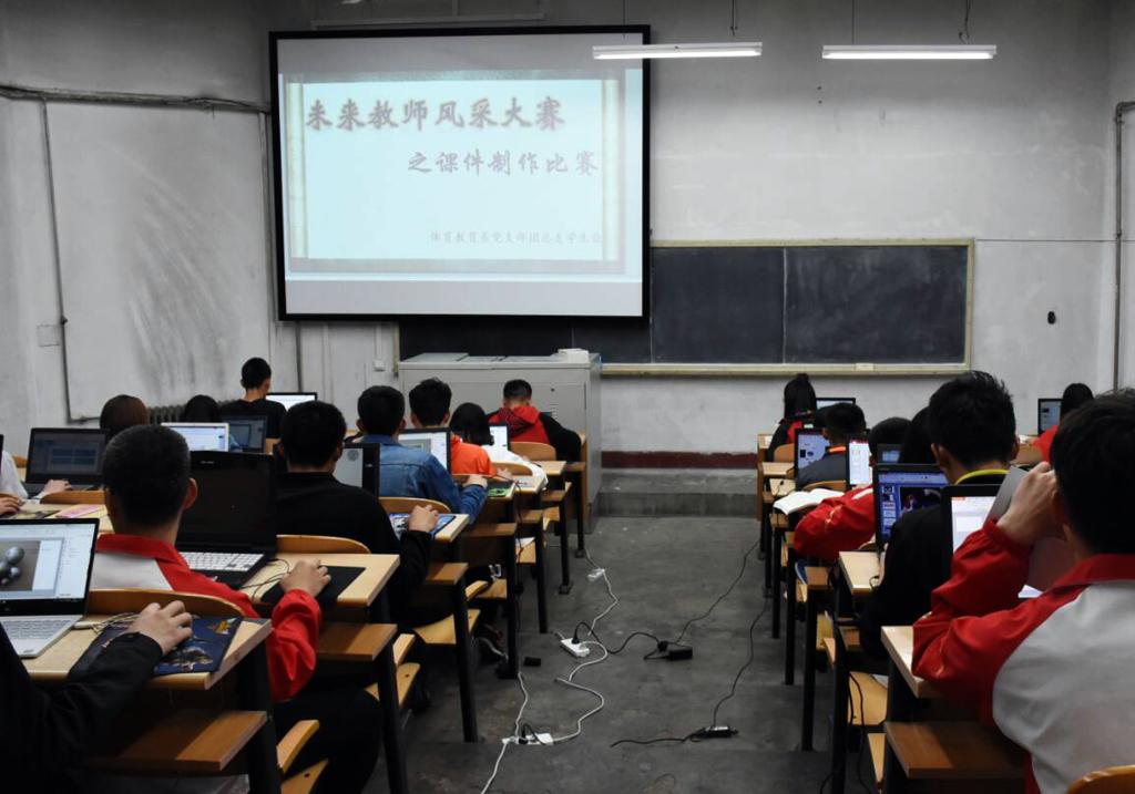 4月24日晚七点,由体育教育系主办,体育教育系党支部、团总支、员工会承办的体教系未来教师风采大赛之课件制作篇比赛在公司阶梯二教室进行,系副主任张杰老师来到现场,观摩了本次比赛。参赛选手们精心准备,运用创造性的制作方式,采取图片、文字等多种直观形式结合的方法,呈现出一个个新颖注目的课件。随着作品的顺利收集,参赛队员有序的离场,最终,课件制作比赛圆满成功。来自体教1504班的白晶获得一等奖,体教1503班的马卓心和体教1602班的李明伟获得二等奖,体教1605班的王从婕和体教1703班的白嘉隆和体教1704班的刘光灿获得三等奖。(体育教育系 叶悦供稿 )