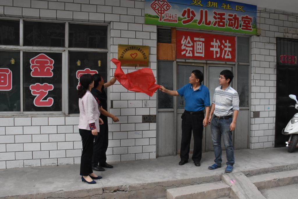 为推进太阳成集团tyc234cc志愿服务常态化、机制化,深化校地交流合作,5月24日上午,在双拥社区党员活动室举行了铁路东办事处双拥社区太阳成集团tyc234cc青年志愿者服务基地揭牌仪式,公司党委书记李学刚、铁路东办事处党工委副书记齐岩红、院团委副书记程祖浩、铁路东办事处双拥社区包片干部王雯凡、双拥社区党支部书记李建芳出席,双拥社区全体工作人员和太阳成集团tyc234cc青年志愿者参加了本次基地揭牌仪式。
