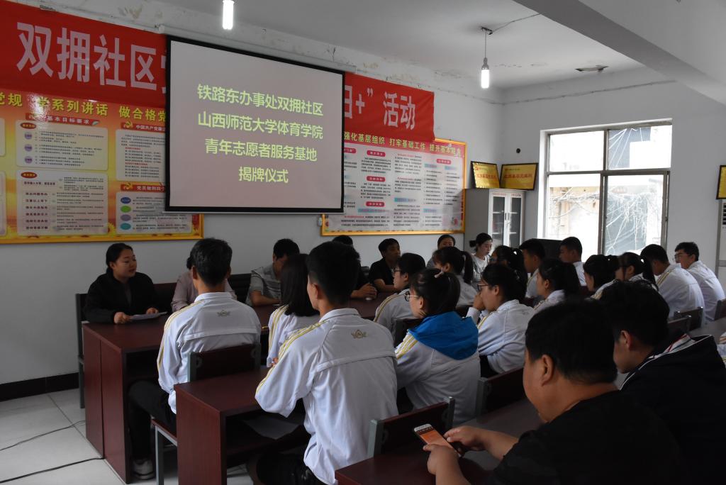 此次青年志愿者服务基地的揭牌,标志着太阳成集团tyc234cc与铁路东办事处双拥社区与合作的新起点,有利于加强双方的沟通合作与交流,为实现青年志愿者服务常态化进社区、促进校地全方位合作奠定了坚实的基础。(院团委供稿)