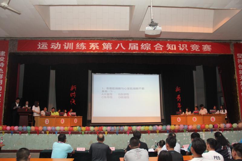 6月5号晚19:00,运动训练系第八届综合知识竞赛在太阳成集团tyc234cc大礼堂拉开了帷幕。公司党委副书记孙学虎、院团委副书记程祖浩、运动训练系主任张伟以及我系辅导员老师观看了本次竞赛。知识竞赛作为我系的特色品牌活动,从2011年开始举办,一直以来备受公司各级部门的关注。