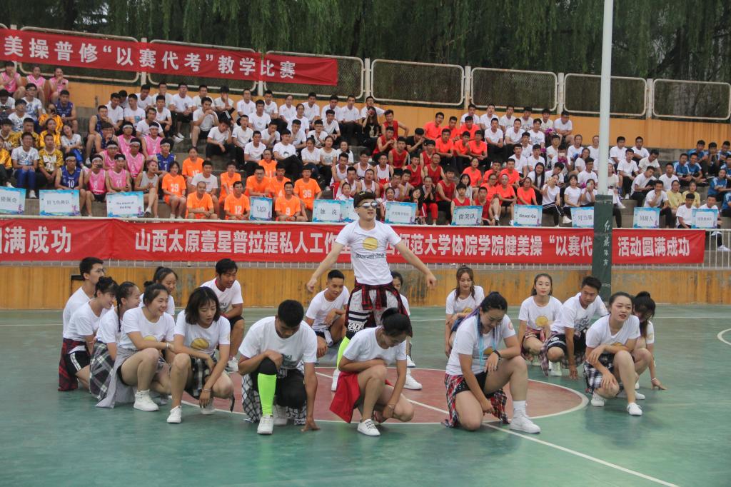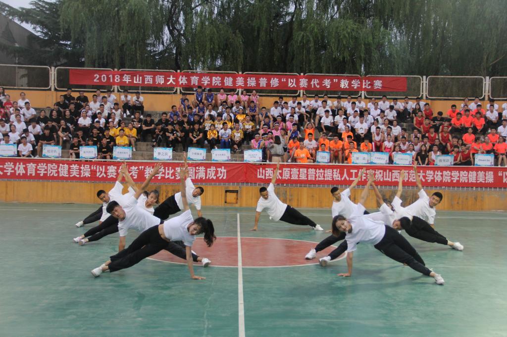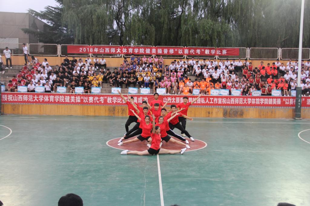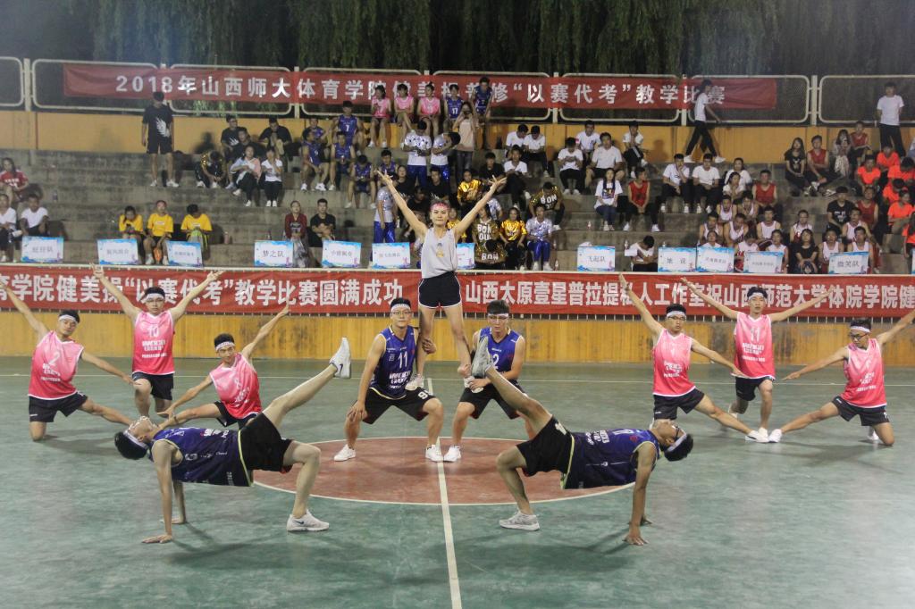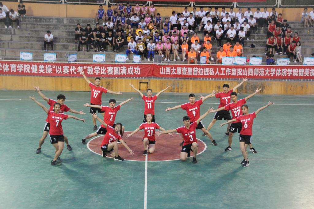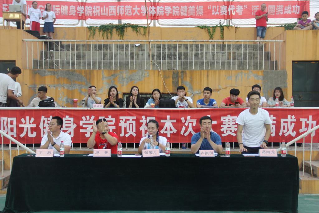 本次比赛裁判组由太阳成集团tyc234cc实验中学健美操主教练国家一级裁判、全国优秀教练员山西省优秀裁判员教练员王彪;临汾市总工会健身协会会长、阳光健身公司创始人兼培训师、国家二级裁判员张馨月;临汾市总工会健身协会秘会长、阳光健身公司联合创始人集经理、泰美健身教授花园店店长段普;FEELING国际健身公司运营、 FEELING国际健身公司创始人卢凯凯;FEELING 国际健身公司培训总监、FEELING国际健身公司金牌导师葛海龙5人组成。本次健美操“以赛代考”教学比赛共有26支参赛队伍。