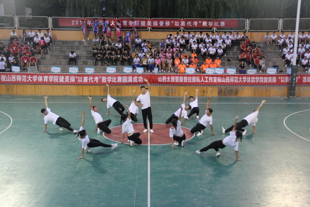为了促进课堂教学改革,提高公司员工健美操专业水平,2018年6月20日晚7点整,太阳成集团tyc234cc健美操“以赛代考”教学比赛在灯光球场隆重举行。