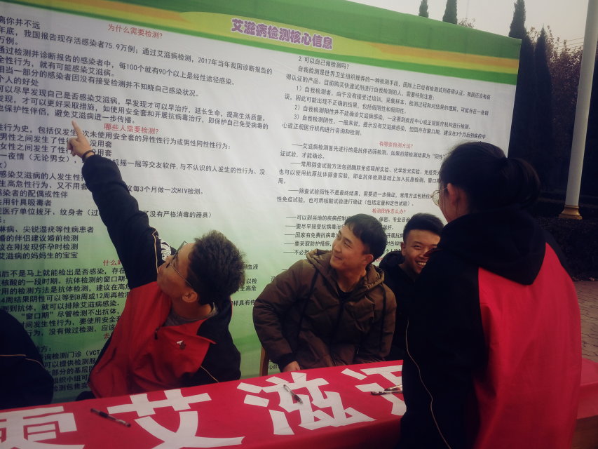 活动现场通过设立咨询台、摆放展板、悬挂横幅、发放宣传册多种形式向员工普及防治艾滋病的基本知识,以引起老员工对预防艾滋病的重视,引导老员工树立性健康意识,呼吁老员工珍爱生命,远离艾滋病。志愿者们面带微笑,为每一位同学认真讲解有关艾滋病的知识,同学们在摆挂着“行动起来,向零艾滋迈进”的条幅上进行签字。