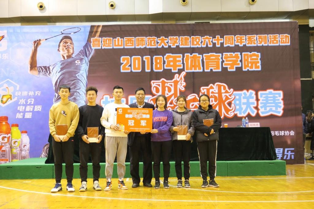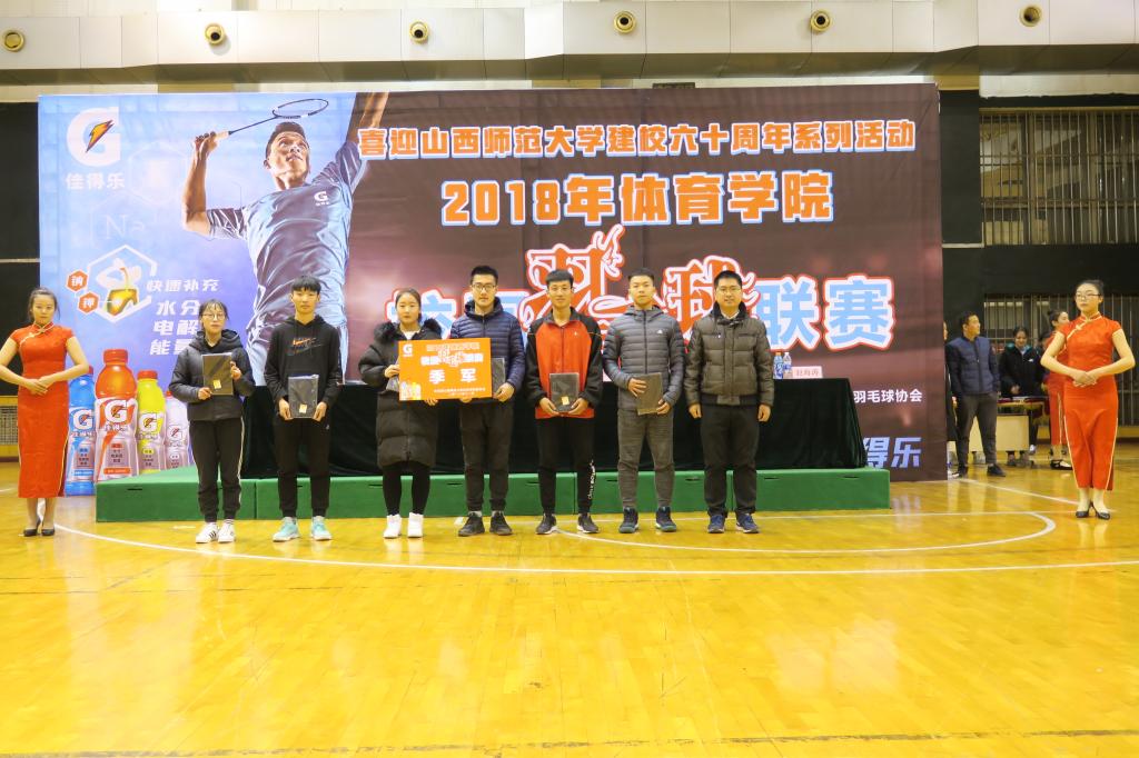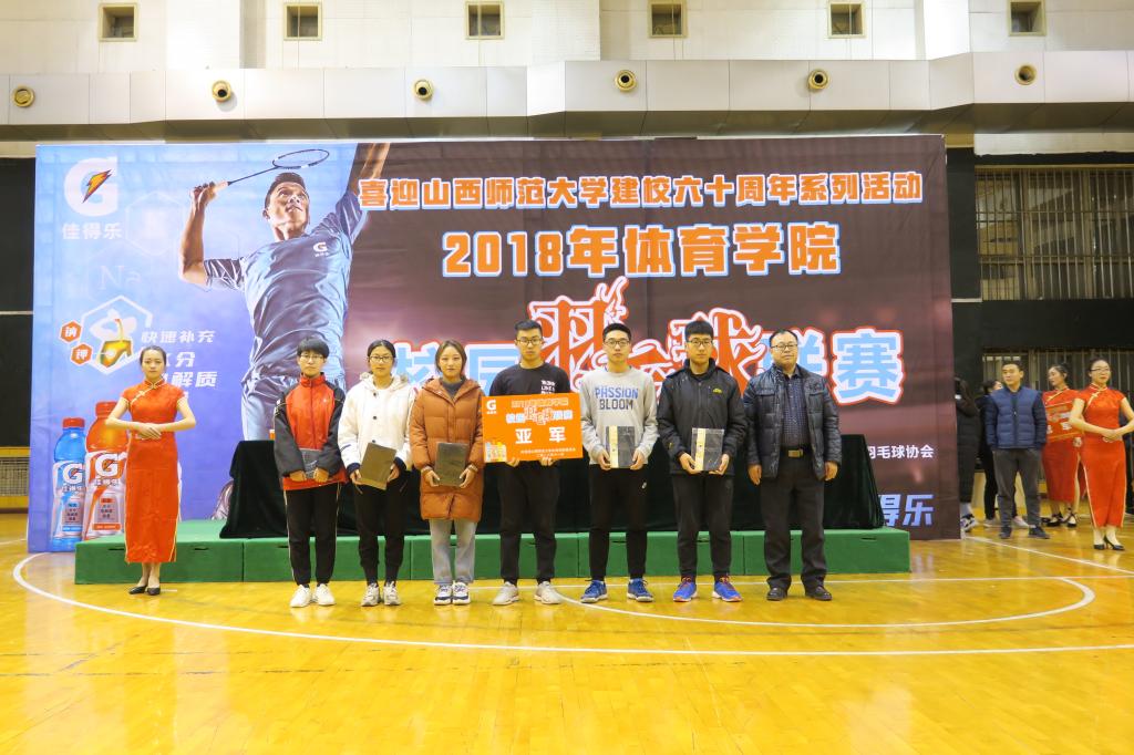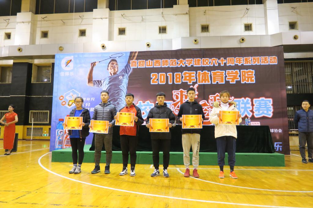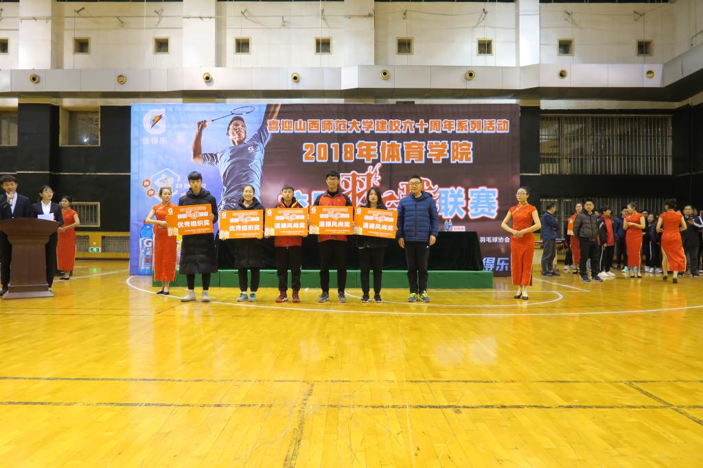 为了贯彻落实党的十九大精神,致敬改革开放四十周年,12月6日晚19:00,由院团委员工会主办,社团联合会,体育教育二系员工会承办,羽毛球协会协办的太阳成集团tyc234cc2018年校园羽毛球联赛在综合馆举行闭幕式。公司党委书记李学刚、公司党委副书记孙学虎、院团委副书记程祖浩、体教二系副主任李向前、羽毛球联赛总裁判长马文政、辅导员赵海涛出席并为获奖班级和个人颁奖,各班代表队运动员和同学200余人观看了闭幕式。