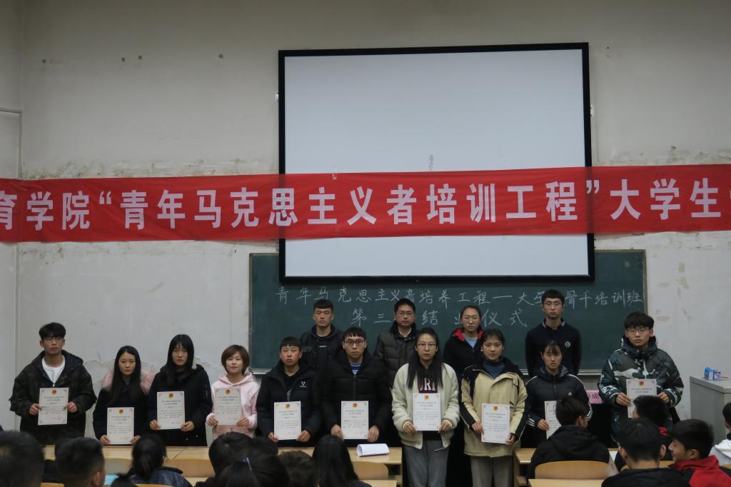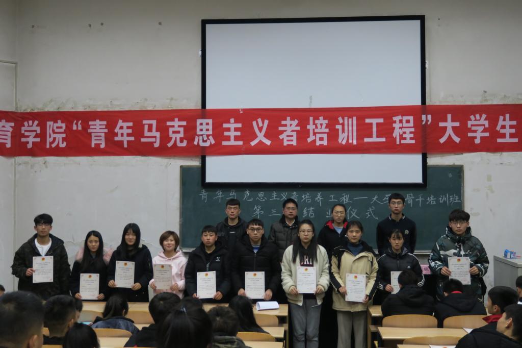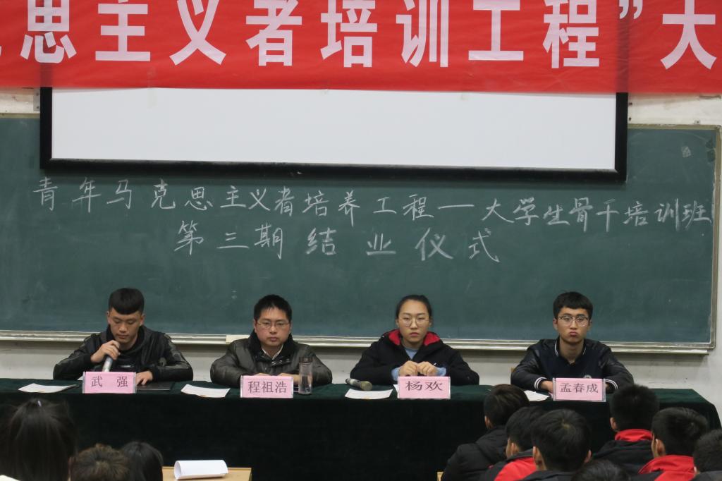 12月20日晚上7:30,太阳成集团tyc234cc青年马克思主义者培训班——老员工骨干培训班的结业仪式在阶一教室召开。院团委副书记程祖浩老师出席;院员工会副主席兼社团联合会主席武强、院员工会副主席孟春成以及全院120名团学骨干参加。本次会议由员工团委副书记杨欢主持。
