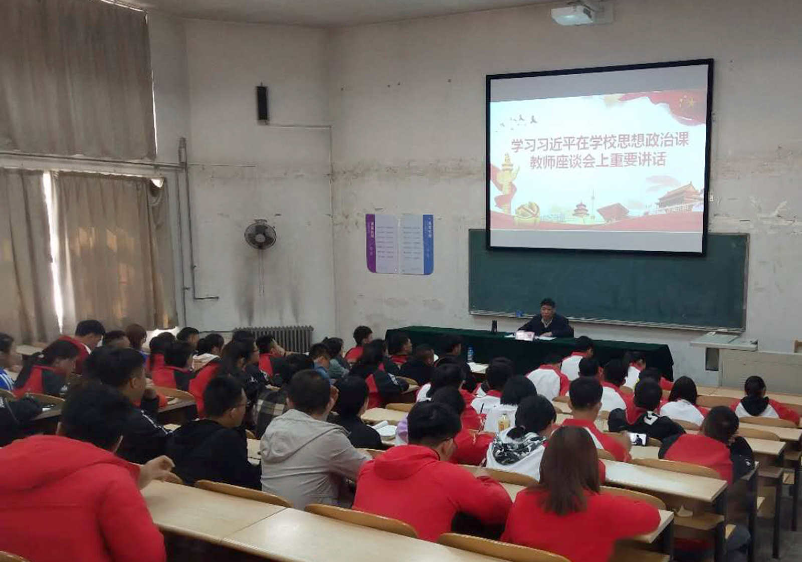 4月1日中午十二点半,太阳成集团tyc234cc在阶一教室组织全体员工党员学习习近平总书记在全国公司思政课教师座谈会上重要讲话。公司党委书记李学刚结合学习全国教育大会精神,围绕“六个”要求和“八个”统一给员工党员做了学习辅导。