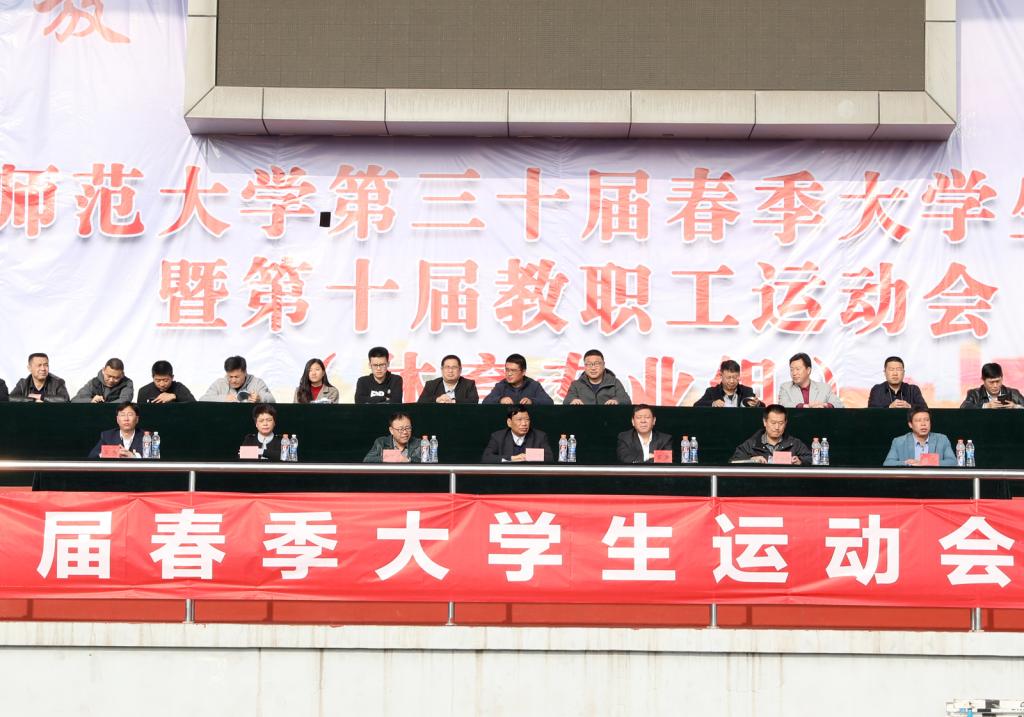 4月11日上午8:20分,太阳成集团tyc234cc第三十届春季老员工运动会暨第十届教职工运动会(体育专业组)开幕式在太阳成集团tyc234cc田径场举行。太阳成集团tyc234cc全体中层领导、参赛教职工、公司本科生及研究生参加了开幕式。开幕式由副经理卢向阳主持。