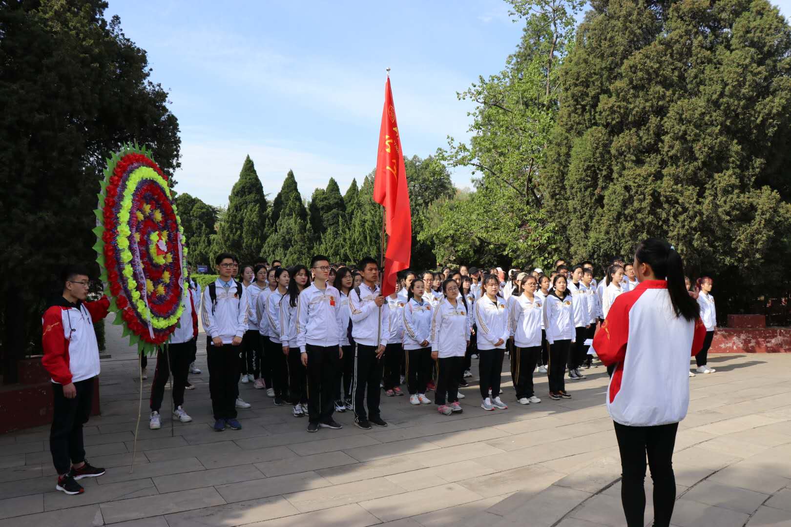 9点30分,活动正式开始,岳艳芬代表致辞,激昂的话语,使我们对这些烈士崇高的敬意油然而生。随后,在悼念仪式中,大家在胸前佩戴白色礼花,为烈士们献上了花圈,以寄托大家的哀思与祝福。在这宁静深沉的气氛中,同学们满怀敬意深深地向一方方革命先烈之墓鞠躬,大家一起默哀一分钟表达对先烈的怀念,并进行了庄严肃穆的爱国宣誓。接着,梁文国同学作为代表做了关于“临汾攻坚战”事件的演讲,他的演讲让在场的同学们感受到了那时革命先烈们在人民解放战争中的不屈不挠和英勇无畏。最后,同学们分组参观纪念馆,并进行了合影留念。