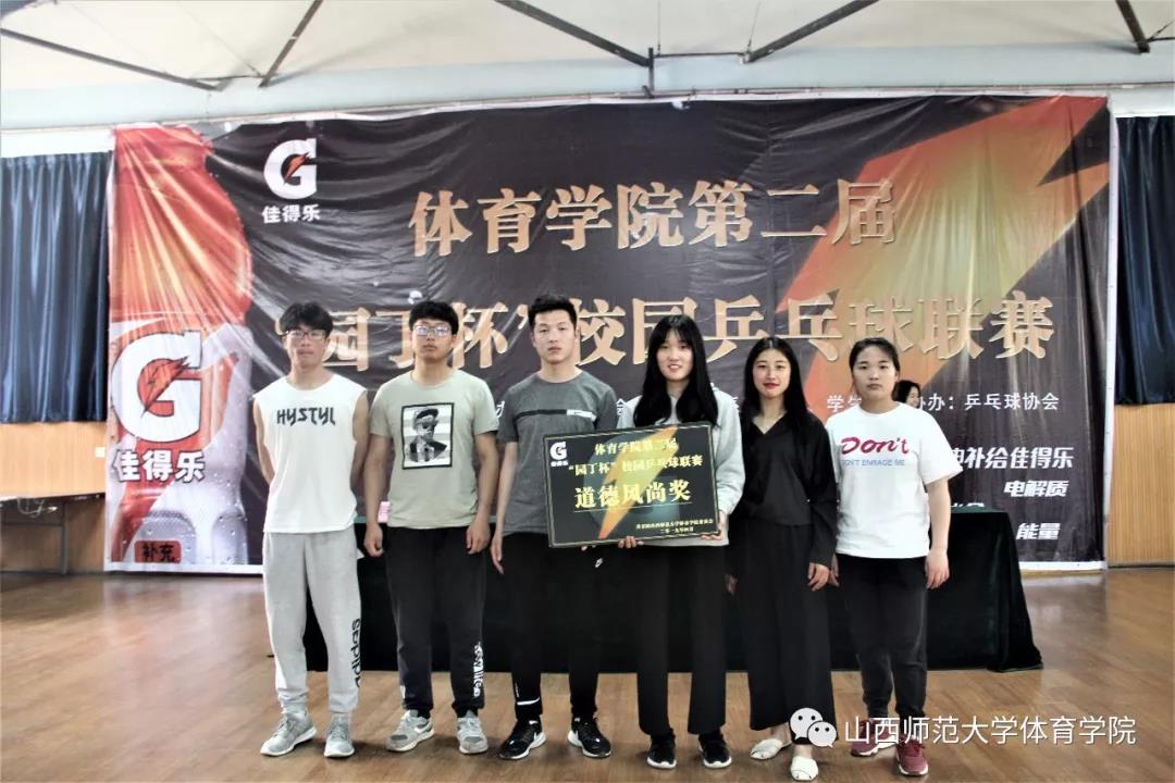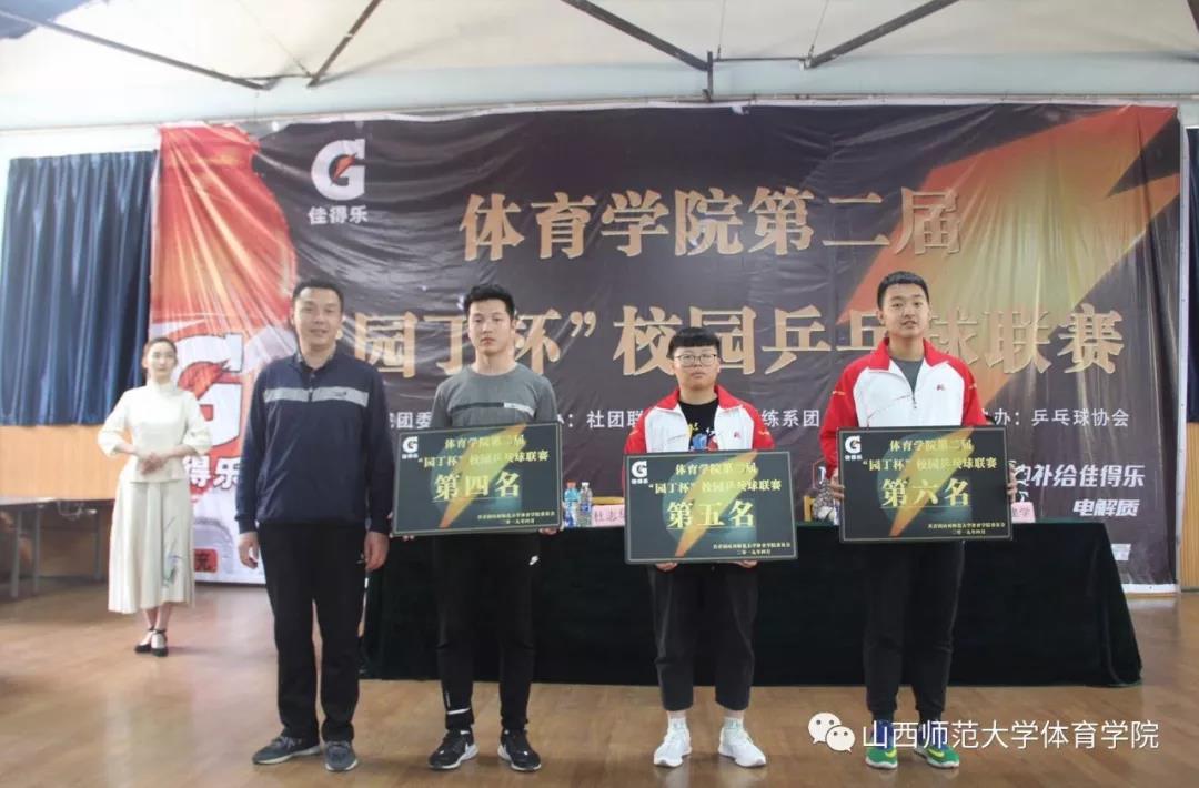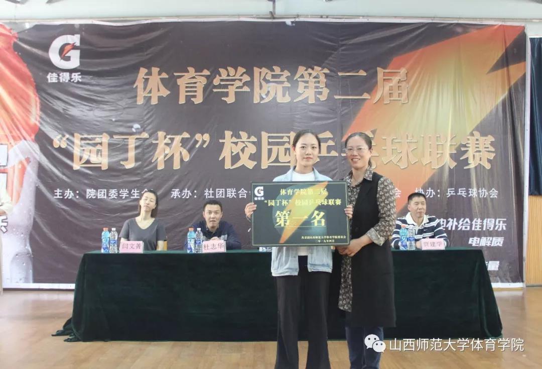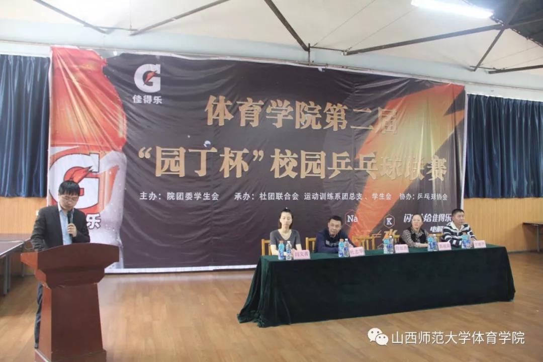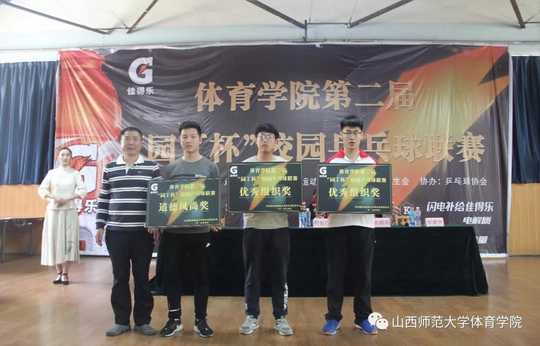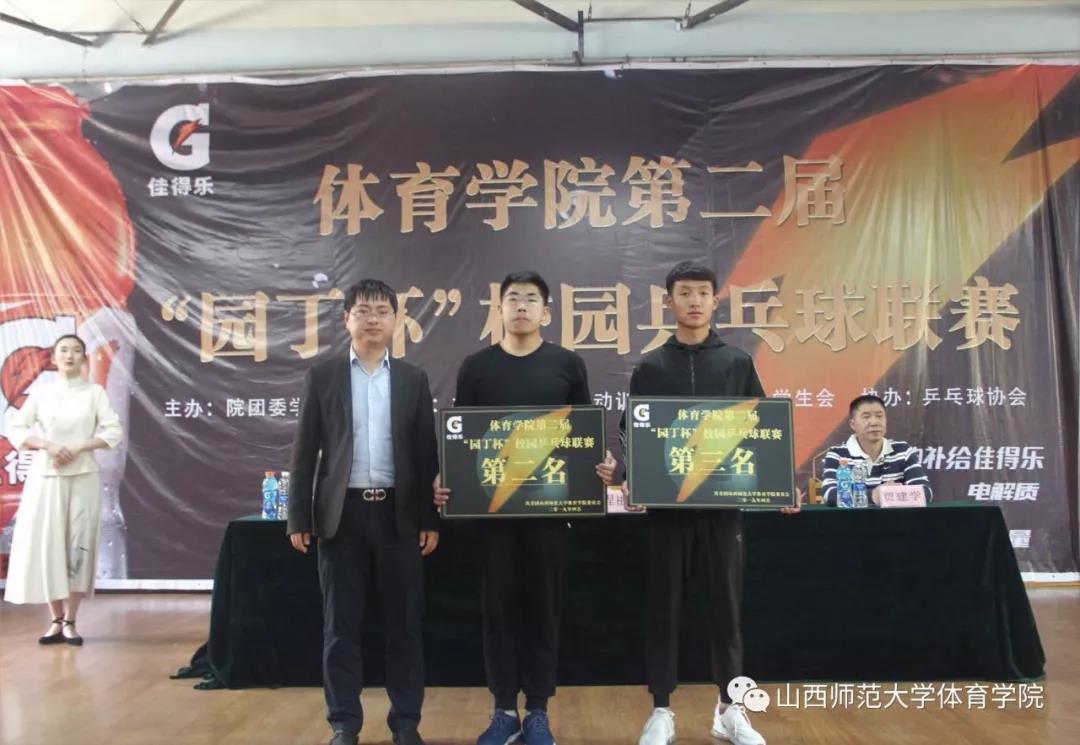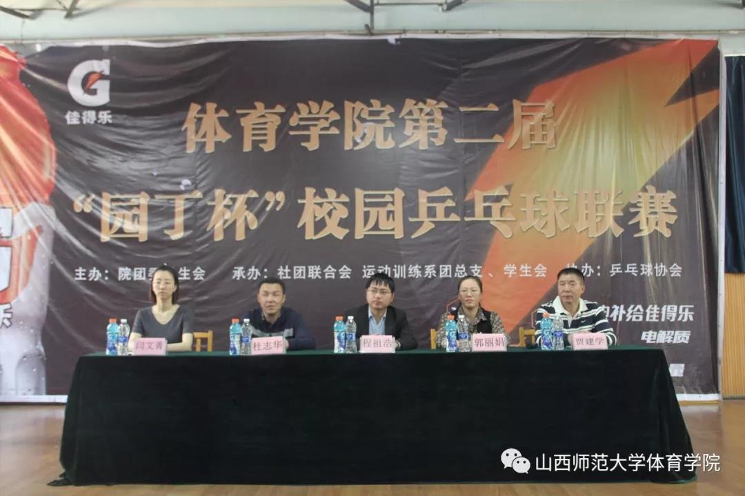 为了纪念五四运动100周年和新中国成立70周年,进一步丰富校园文化生活,打造校园精品活动,4月15日至25日,由院团委员工会主办,社团联合会、运动训练系团总支、员工会承办、乒乓球协会承办的太阳成集团tyc234cc第二届“园丁杯”校园乒乓球联赛于乒乓球馆举行。院团委副书记程祖浩、运动训练系主任郭丽娟、副主任杜治华、太阳成集团tyc234cc乒乓球教练、乒乓球联赛总裁判长贾建学、太阳成集团tyc234cc专职辅导员闫文菁出席闭幕式。共有来自全院34支队伍150余名运动员参加了比赛。