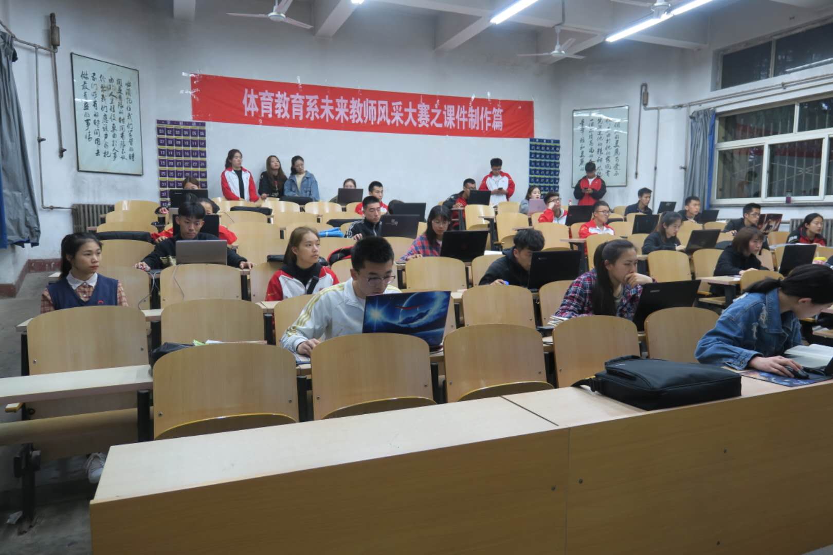 4月18日晚七点半。由体育教育系党支部主办,体育教育系团总支、员工会承办的未来教师风采大赛之翰墨书法篇和课件制作篇在我系展开。本次比赛吸引了大一至大四的众多同学报名参赛。公司党委委员,系主任张杰老师亲临现场,进行了观摩。