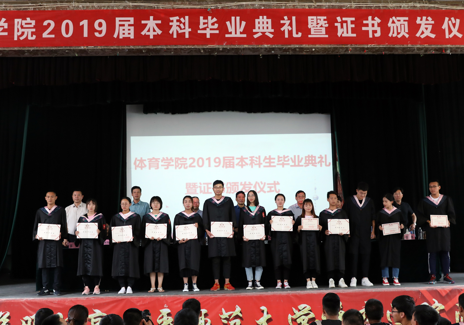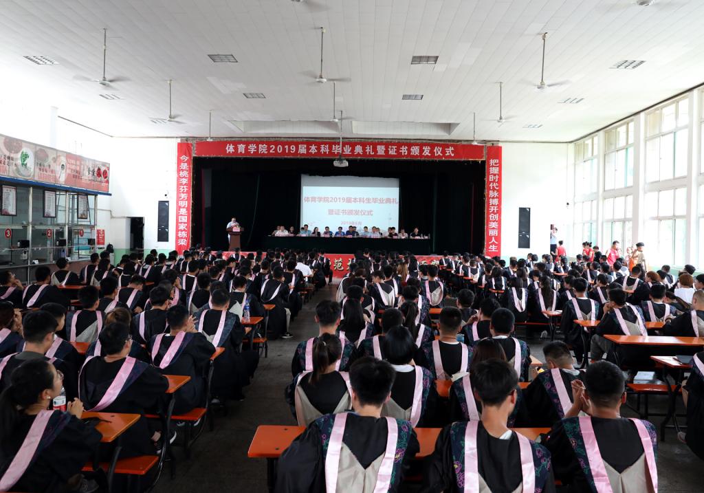 6月26日15:00,太阳成集团tyc234cc2019届本科生毕业证书颁发仪式在三校区大礼堂隆重举行。公司党委书记李学刚、公司党委委员、经理郑旗、公司党委副书记孙学虎、副经理陈乐琴、王江、张伟、公司党委委员、体育教育系主任张杰出席,各党支部书记和系、部科室负责人、毕业班辅导员以及400余名毕业生参加。仪式由公司党委副书记孙学虎主持。