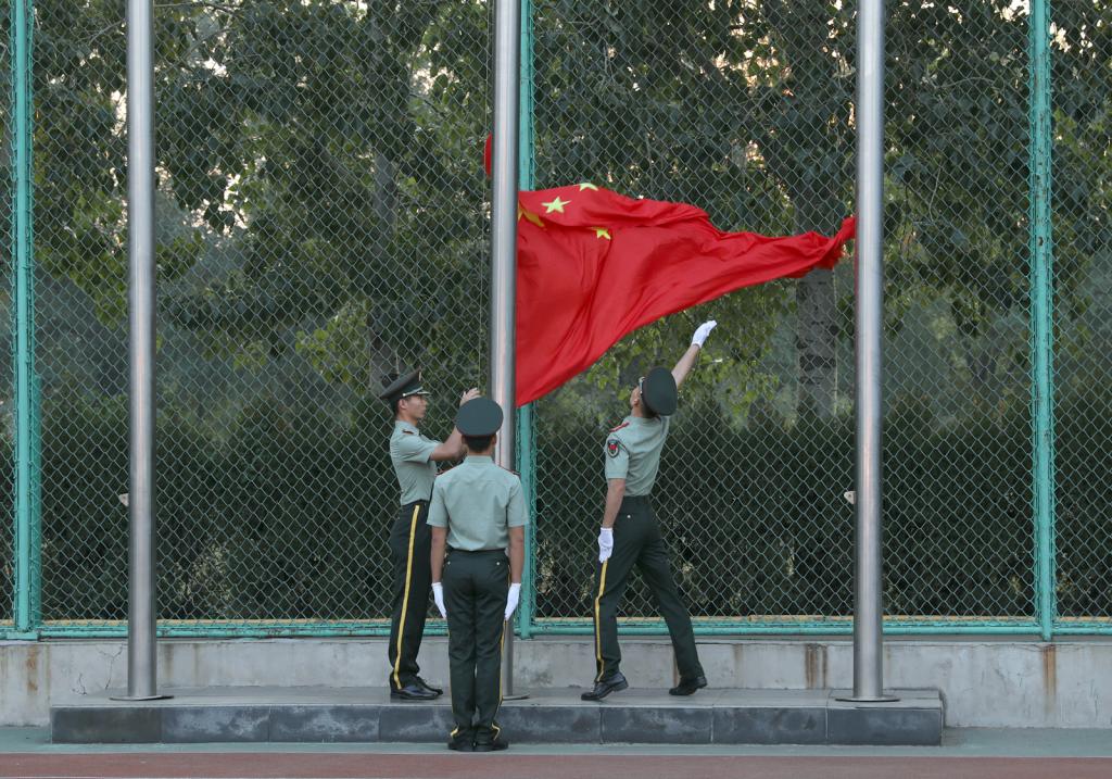 仪式伊始,国旗护卫队队员迎着朝阳,护卫着鲜艳的五星红旗入场。他们着装整齐、步伐矫健,伴随着雄浑的《义勇军进行曲》,五星红旗冉冉升起,激发了全体师生强烈的爱国热情。