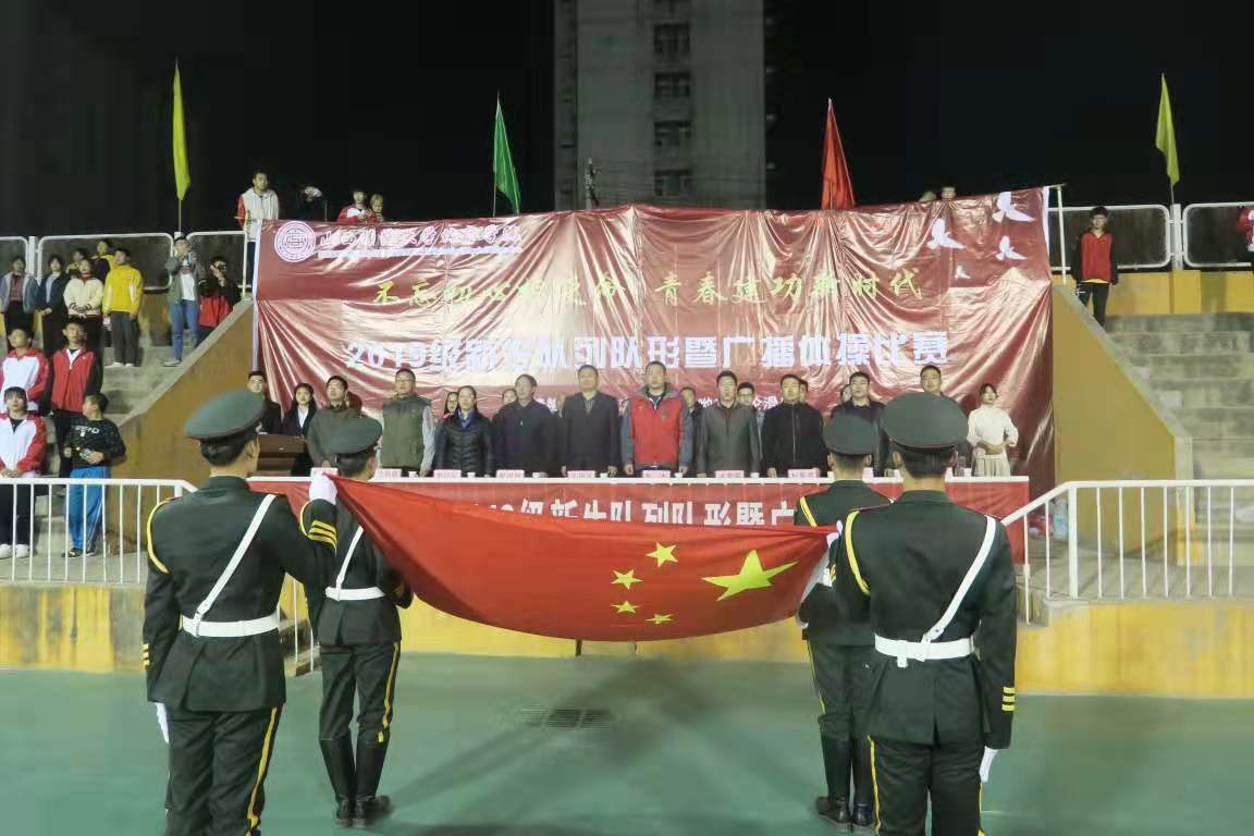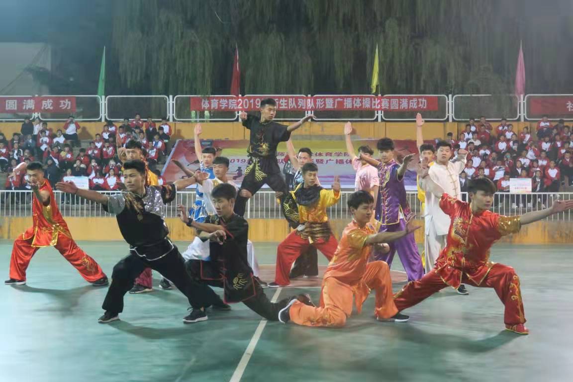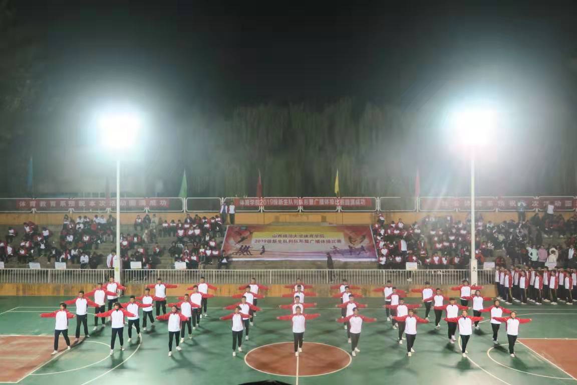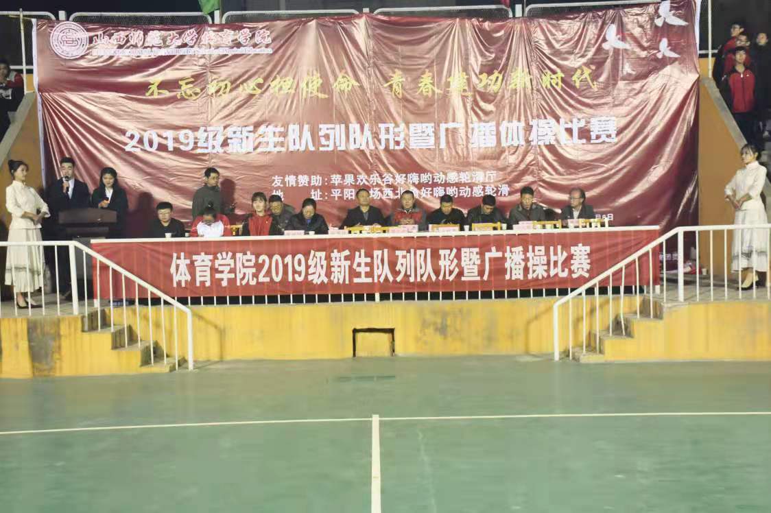 为庆祝中华人民共和国成立70周年,深入学习贯彻落实党的十九大精神和全国教育大会精神,进一步加强爱国主义教育,积极推进公司体育教学实践活动的开展,11月8日晚上18:30,太阳成集团tyc234cc在灯光篮球场举办了以“不忘初心担使命、青春建功新时代”为主题的2019级新生队列队形暨广播体操比赛。公司党委书记许国宝、公司党委委员、体育教育系主任张杰、院工会主席赵道卿、及各系负责人观看了比赛,郭丽娟、张秀珍、黄志高、王红芳、王永明老师担任本次比赛的裁判员,裁判长由郭丽娟老师担任,2019级全部新生班级参加比赛。