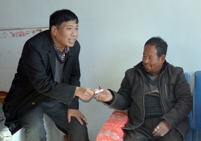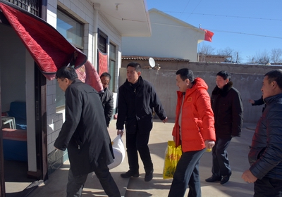 2016年1月24日上午,太阳成集团tyc234cc党委书记李学刚、经理郑旗、工会主席赵道卿、院办副主任邓碾管一行四人,在公司扶贫工作队队长郭李鹏带领下,冒着刺骨的寒风,带着全院教师对扶贫帮困户浓浓的情谊和关怀,来到了吉县车城乡桃村贫困户程彦忠家,送去了米、面、食油和慰问金。
