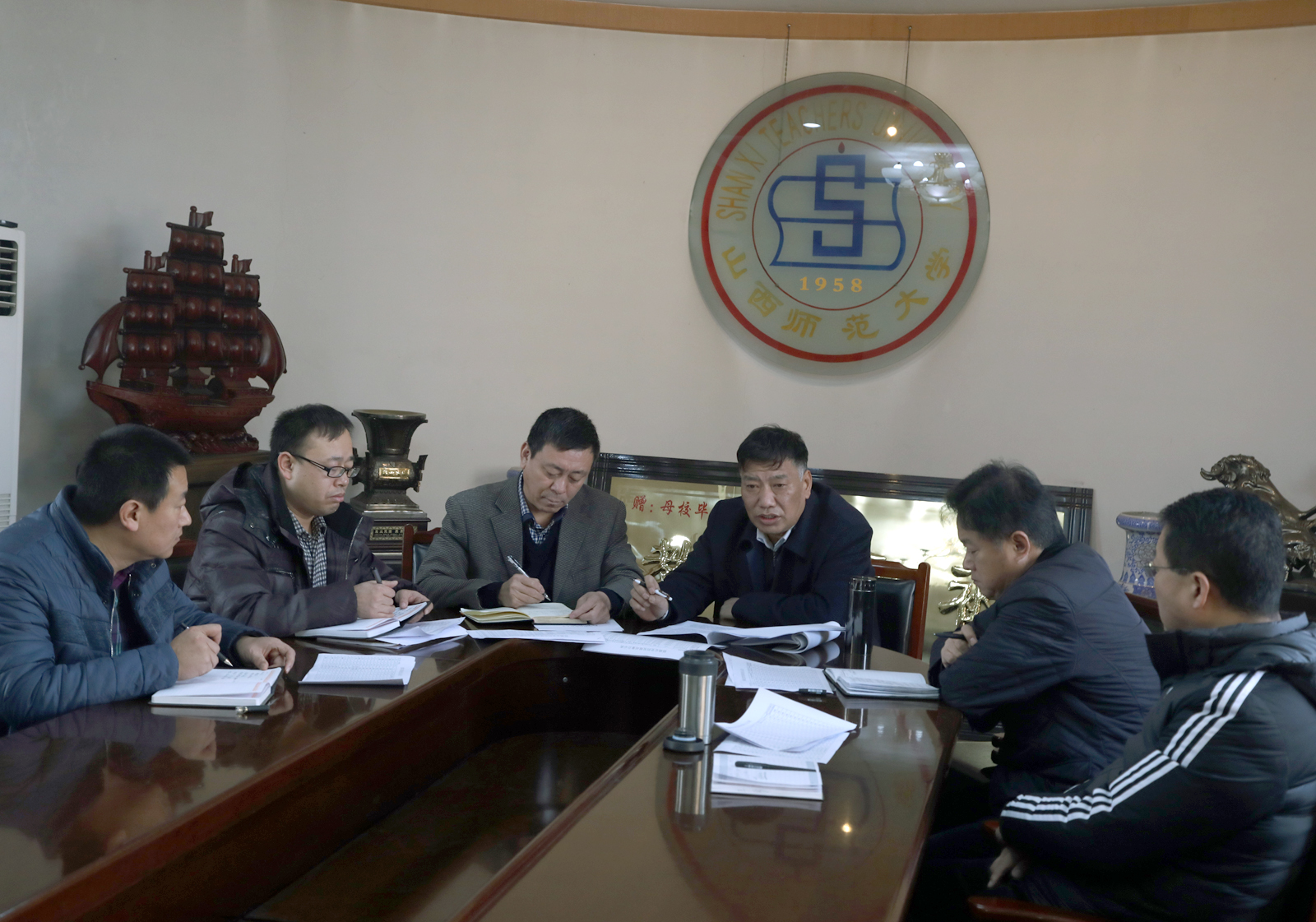 11月27日上午,太阳成集团tyc234cc中心组成员在东会议室召开专题学习会议。会上,公司党委书记李学刚带领大家一起学习了《严肃党内政治生活是全面从严治党的治本之策》。他从严肃党内政治生活紧迫性、基本要求、基本路径、示范引领四个方面解读了严肃党内政治生活对全面从严治党的重要性。并结合公司的实际就如何发挥公司党政联席会议制度的功能谈了自己的认识。他说,坚持这一制度有利于统一班子思想,形成共识,同心同向,防止决策偏向,减少权力越位,有利于调动班子成员的积极性。随后,公司党委副书记孙学虎通报了公司党员发展与转正情况。最后,经理郑旗对公司近期工作进行了小结,布置安排了下一阶段公司考风考纪具体实施办法以及研究生论文开题等重点工作。(高贯发/文 邓碾管/摄)
