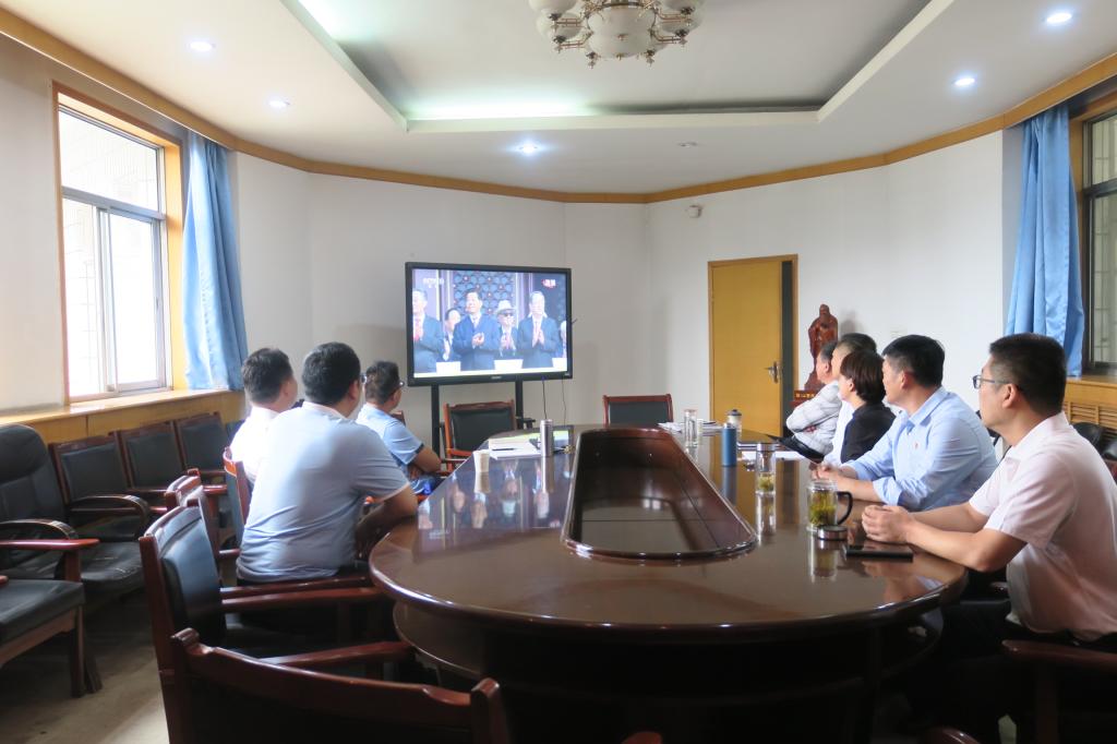 2019年10月1日上午10时,庆祝中华人民共和国成立70周年大会、阅兵和群众游行等系列重大活动在北京天安门广场举行。为深入开展爱国主义教育活动,激发爱国热情,振奋民族精神,10月1日上午,公司组织全院领导班子、教职工、在校员工及校女子足球队等分别在公司东会议室、大礼堂、教学楼7教室观看了庆祝中华人民共和国成立70周年系列重大活动实况直播。
