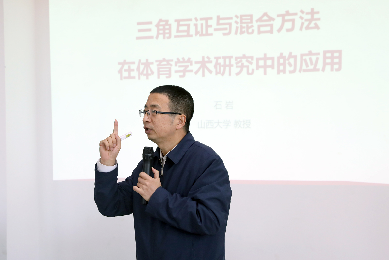 12月16日下午,在南校区7号楼体育心理学实验室,山西大学博士生导师、初民公司经理石岩教授应邀为公司师生进行了《三角互证与混合方法在体育学术研究中的应用》的学术报告。报告会由院研究生部主任李海伟主持,公司部分教师及研究生参加了学术报告会。