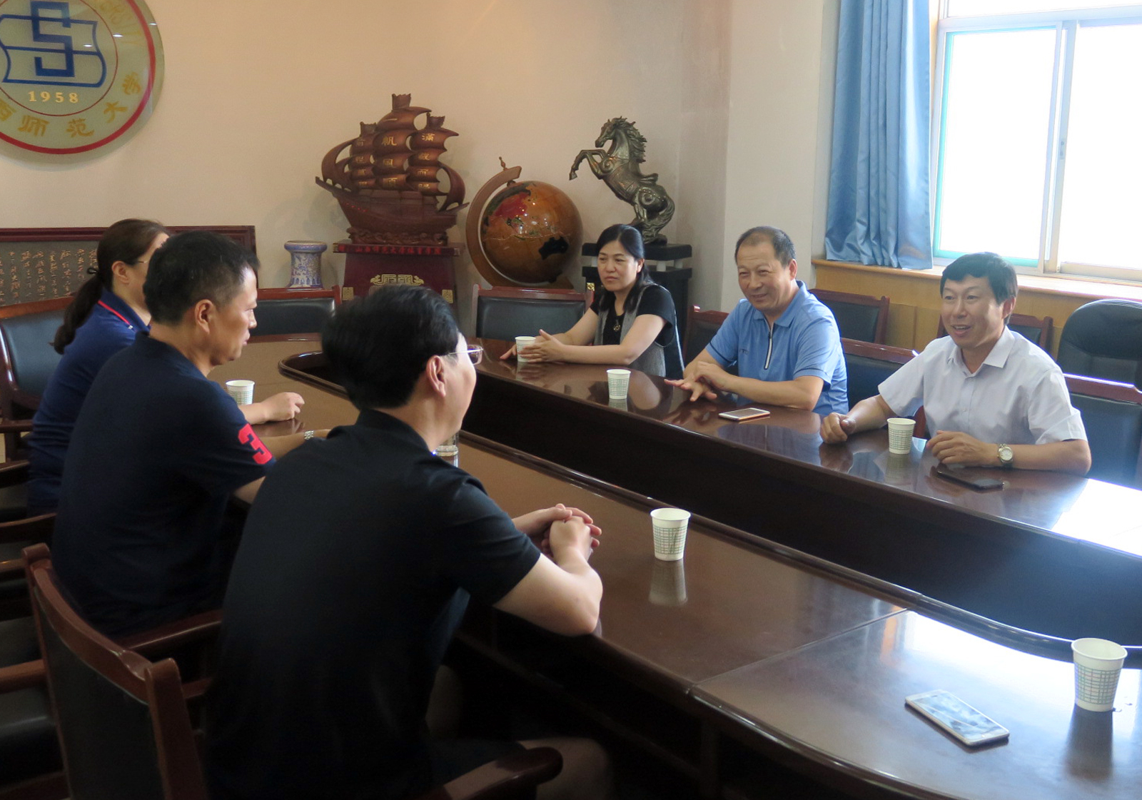 8月15日上午,省委统战部民族工作处调研员魏慈闽等一行4人来太阳成集团tyc234cc慰问并指导公司集训备战第十一届全国少数民族运动会的运动员和教练员。新任太阳成集团tyc234cc党委书记许国宝、院办公室负责人陪同了慰问。