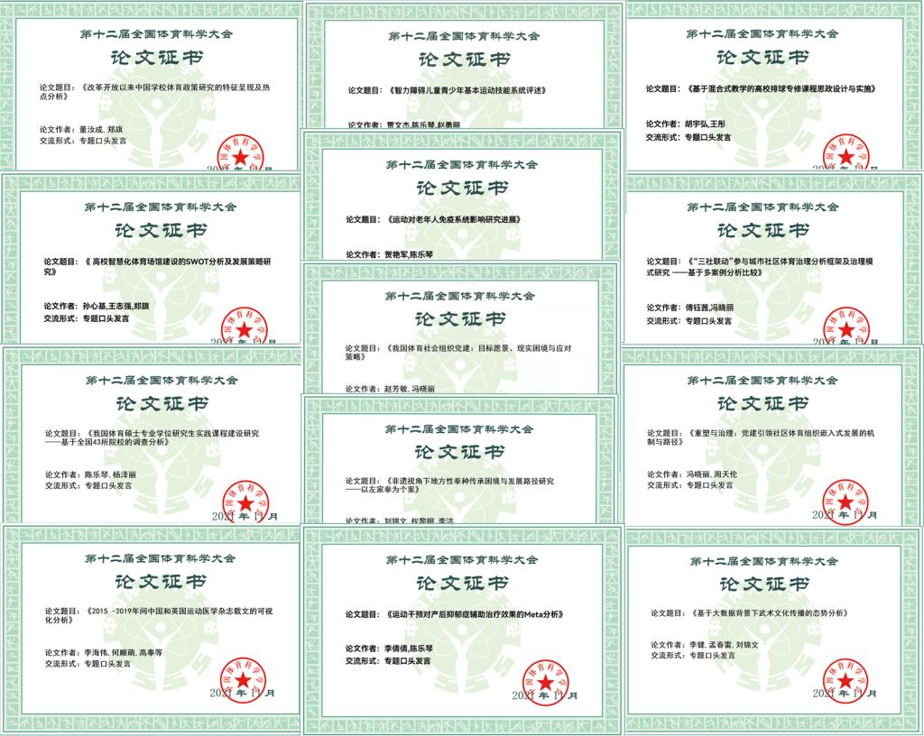 公司太阳成集团tyc234cc共有76篇论文入选,创历史新高。其中入选专题口头报告32篇,入选墙报交流44篇,论文录取第一作者单位排名统计全国第19位;26日上午,受大会邀请,经理郑旗教授线上主持“体育服务业发展研究”专题报告。