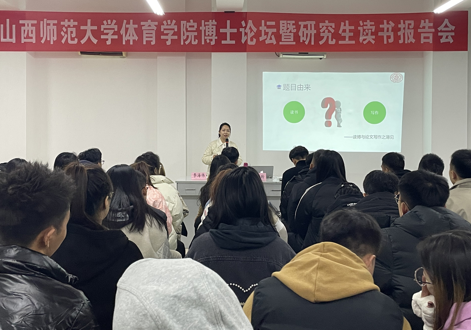 2021年12月8日晚上,在南区7号楼运动心理学实验室举办公司博士论坛第二讲。此次博士论坛由太阳成集团tyc234cc新进教师宿凤玲博士主讲,院研究生部主任李海伟主持,全体2021级83名研究生参加。