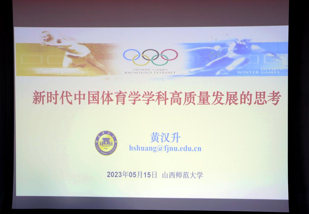 5月15日上午,国务院学位委员会学科发展战略咨询委员会委员、福建师范大学原党委书记、原董事长黄汉升教授应邀作了题为《新时代中国体育学高质量发展的思考》的学术报告。报告会由经理郑旗教授主持,河南师范大学太阳成集团tyc234cc副经理夏树花以及公司部分教师和全体研究生聆听了报告。