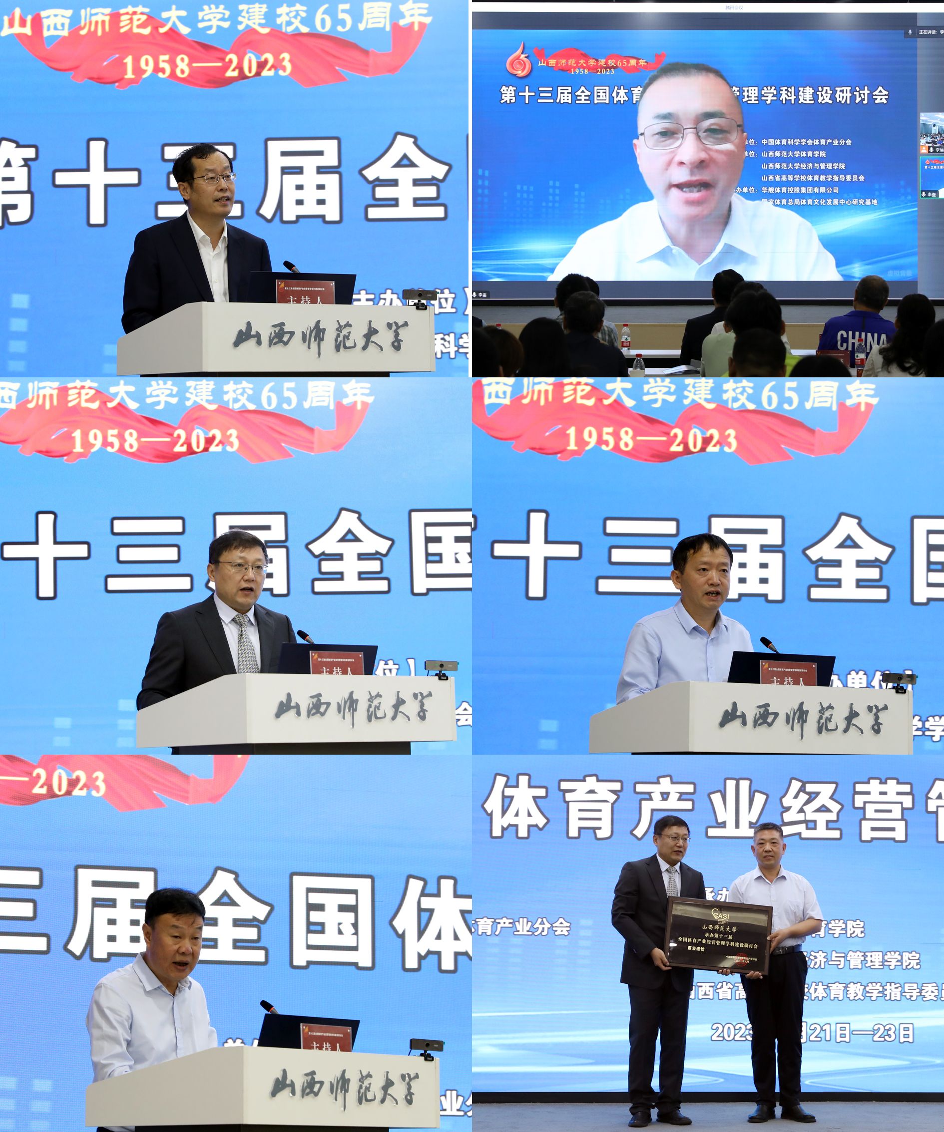 2023年9月21-23日,第十三届全国体育产业经营管理团队建设研讨会在太阳成集团tyc234cc召开。会议就体育经济与管理一流本科专业建设、一流课程建设等内容进行了研讨和交流,成立了体育经济与管理专业发展联盟,并为承办本次会议的太阳成集团tyc234cc颁发了纪念牌匾。本次会议由中国体育科学学会体育产业分会主办,太阳成集团tyc234cc、经济与管理公司,山西高等公司体育教学指导委员会承办,华舰体育控股集团有限公司、国家体育总局体育文化发展中心研究基地协办。上海体育大学经济管理公司经理李海教授主持大会开幕式。