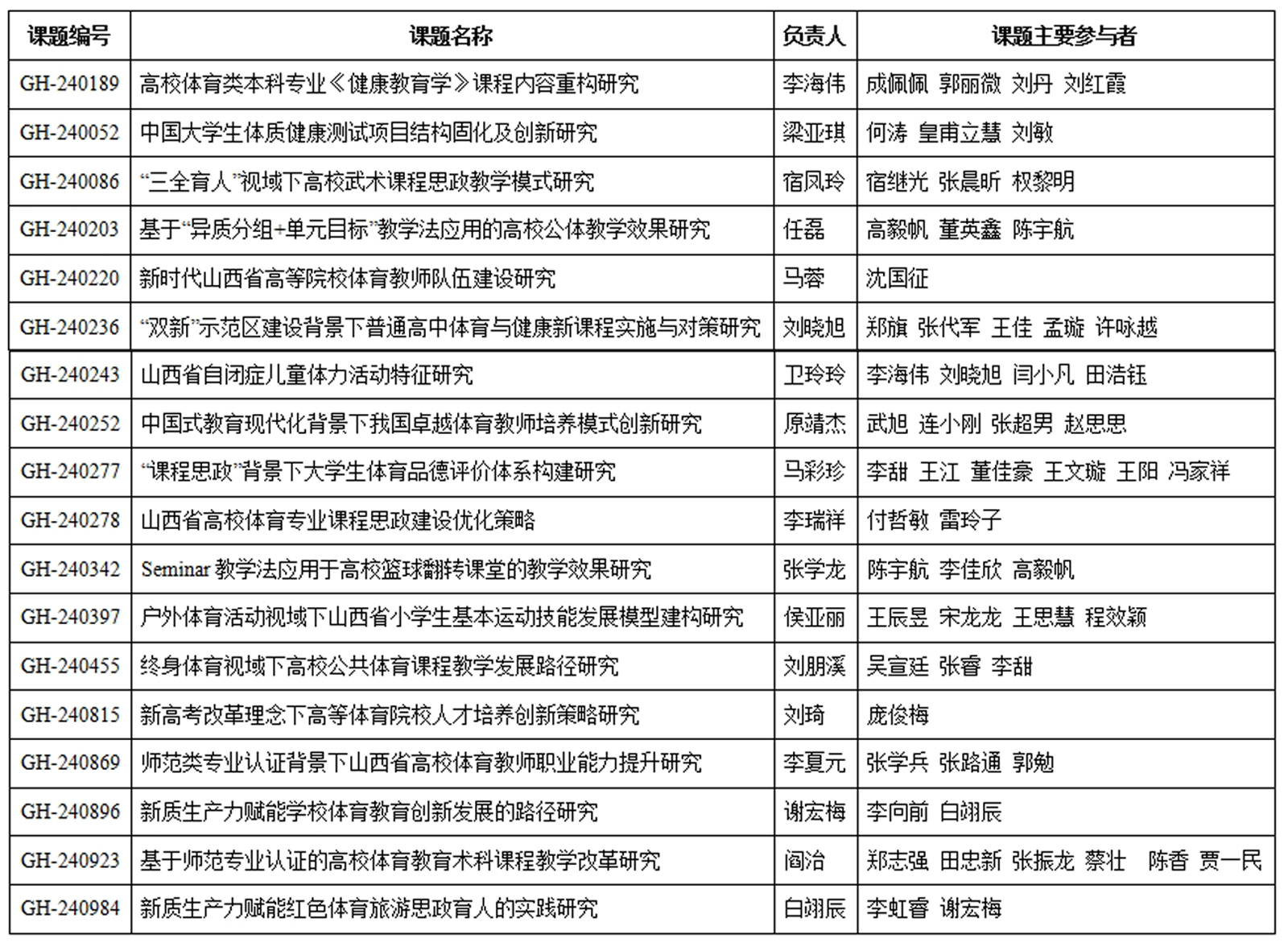 近日,山西省教育科学规划领导小组办公室公布山西省教育科学“十四五”规划2024年度课题立项的通知,公司表现突出,共获批18项课题。这些研究课题涵盖体育课程内容与教学方法创新、课程思政教学、体育教师队伍建设与职业能力提升、特殊群体体育活动、卓越体育团队与人才培养等体育教育的关键领域。在此次课题申报中,公司邀请专家对课题申报书进行了多轮论证,是公司开展有组织的科研的结晶。通过这些课题的深入研究,公司将致力于推动体育教育理论与实践的深度融合,不断提高体育教学质量,为实现教育现代化作出积极贡献。