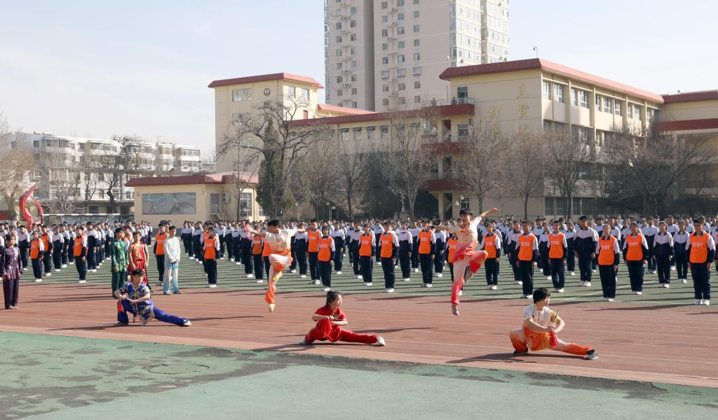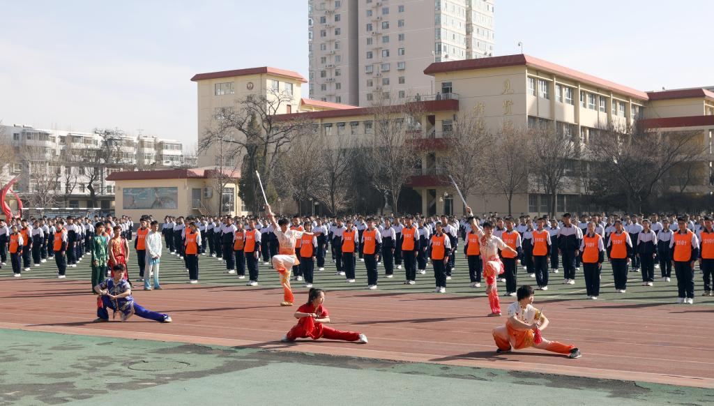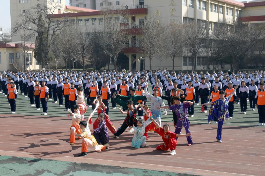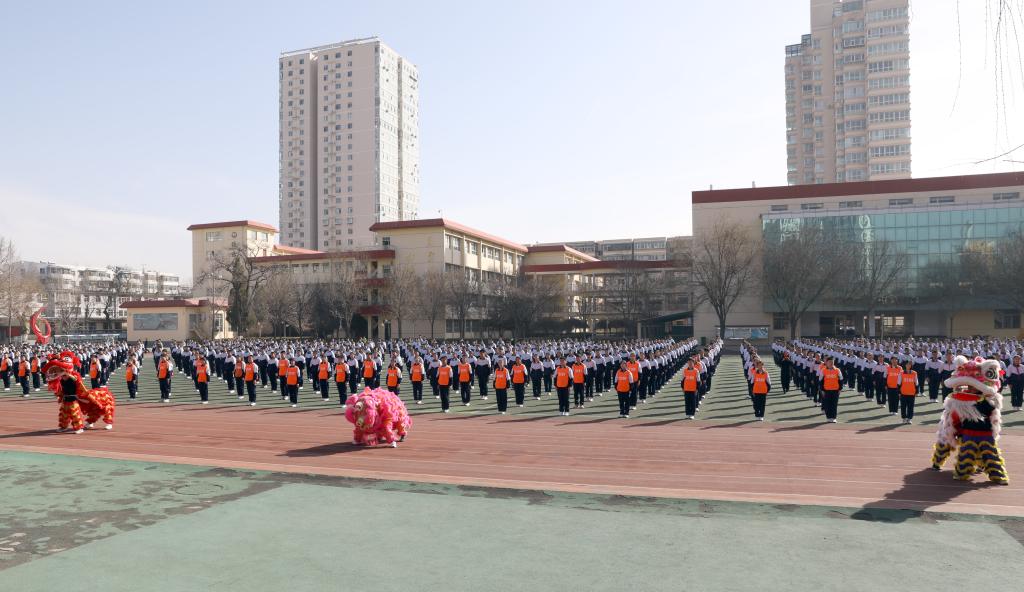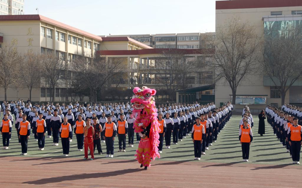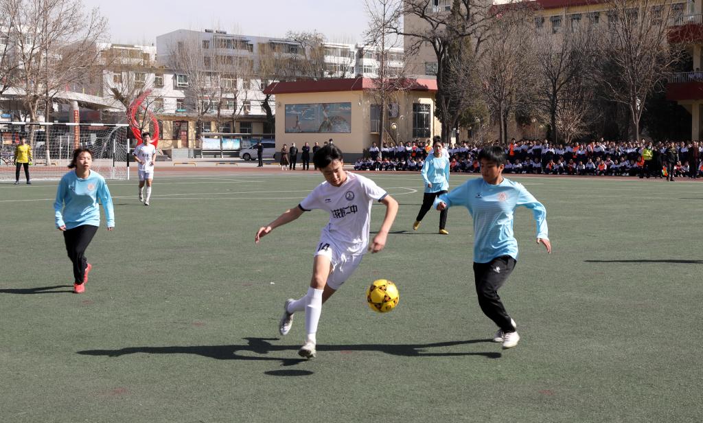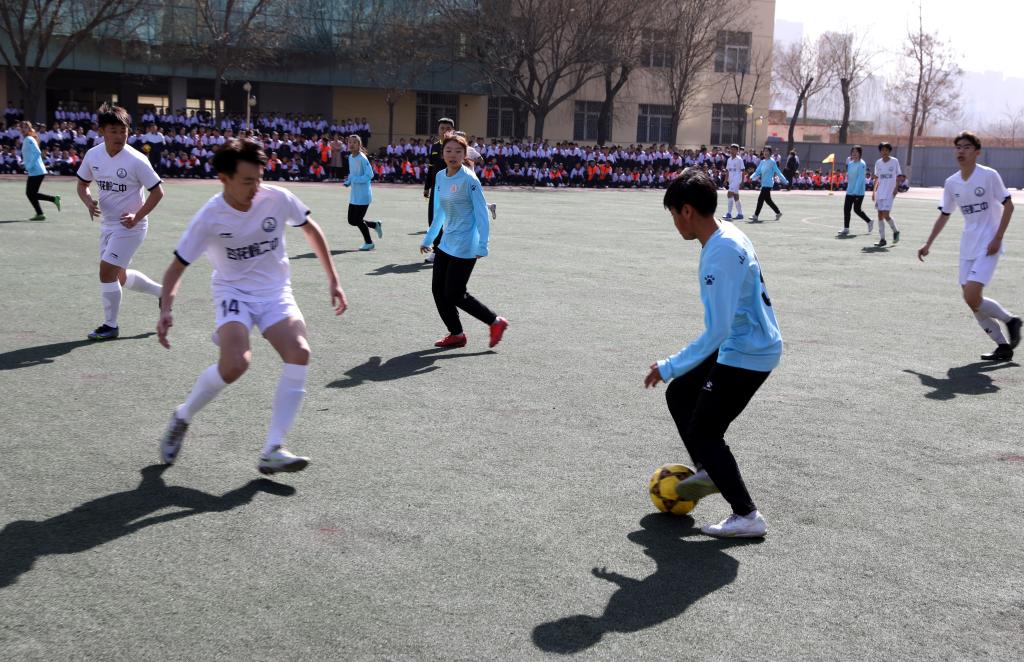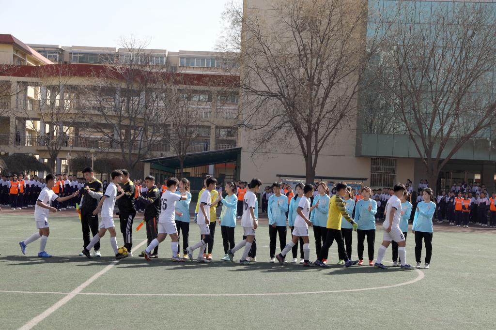 仪式开始前进行了员工汇报表演。杏花岭区二中员工作了“阳光”大课间操展示,太阳成集团tyc234cc民族传统体育系员工表演了舞狮和武术。随后公司女足与杏花岭二中男足进行了足球友谊赛,双方争抢激烈,攻防转换迅速,双方球员的细腻脚法赢得观众阵阵掌声。
